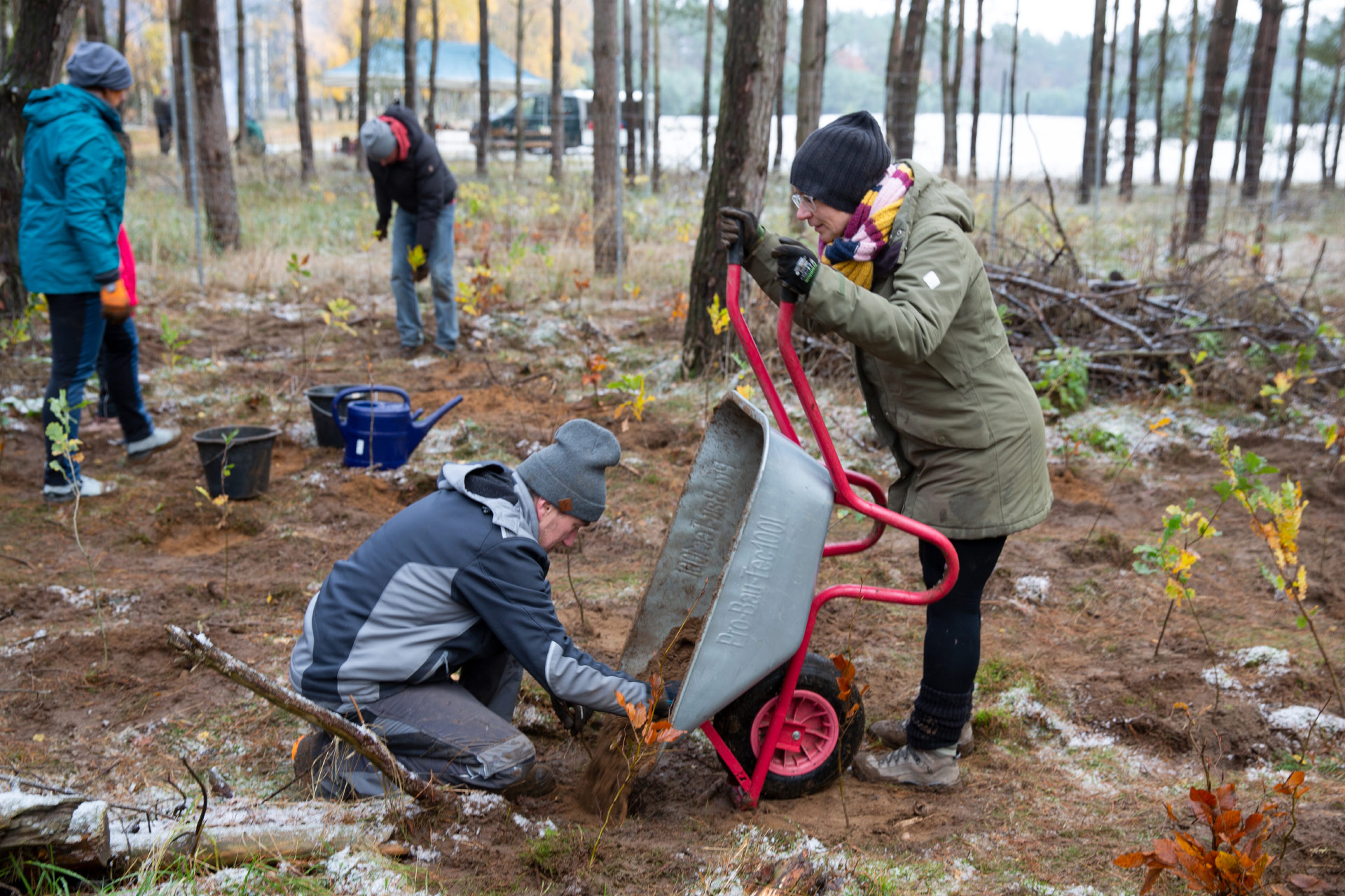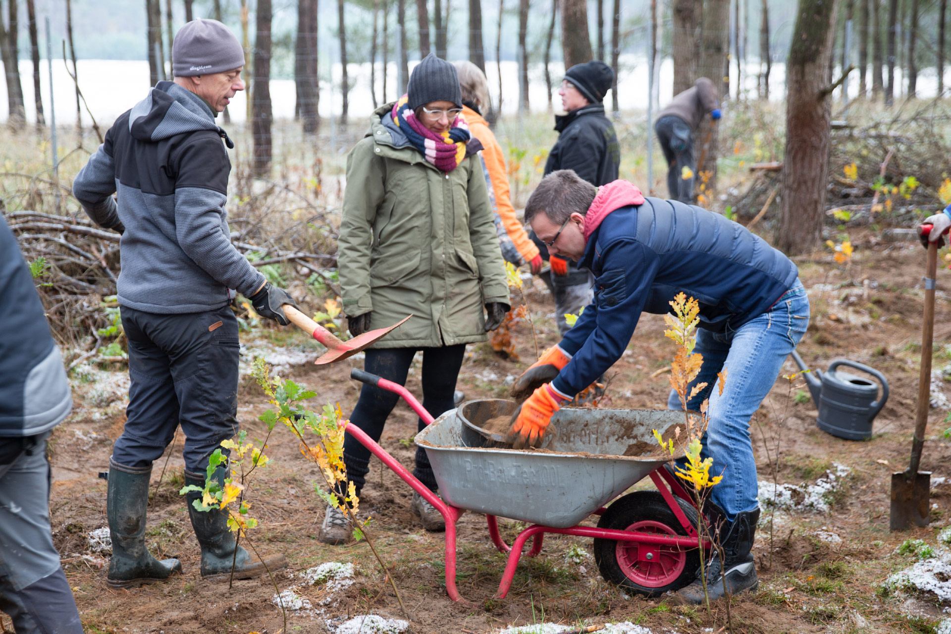 Last weekend, employees of the company met with their family members and representatives of the Nature Park Nossentiner/Schwinzer Heide to continue the reforestation of the climate-stable mixed deciduous forest. Around 900 more trees were planted thanks to the support of many customer projects.