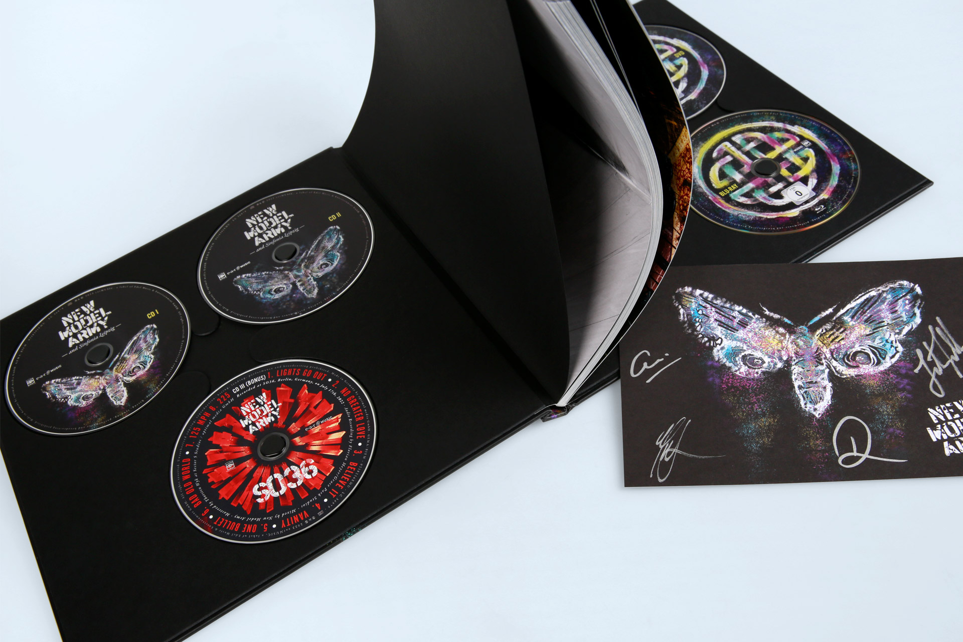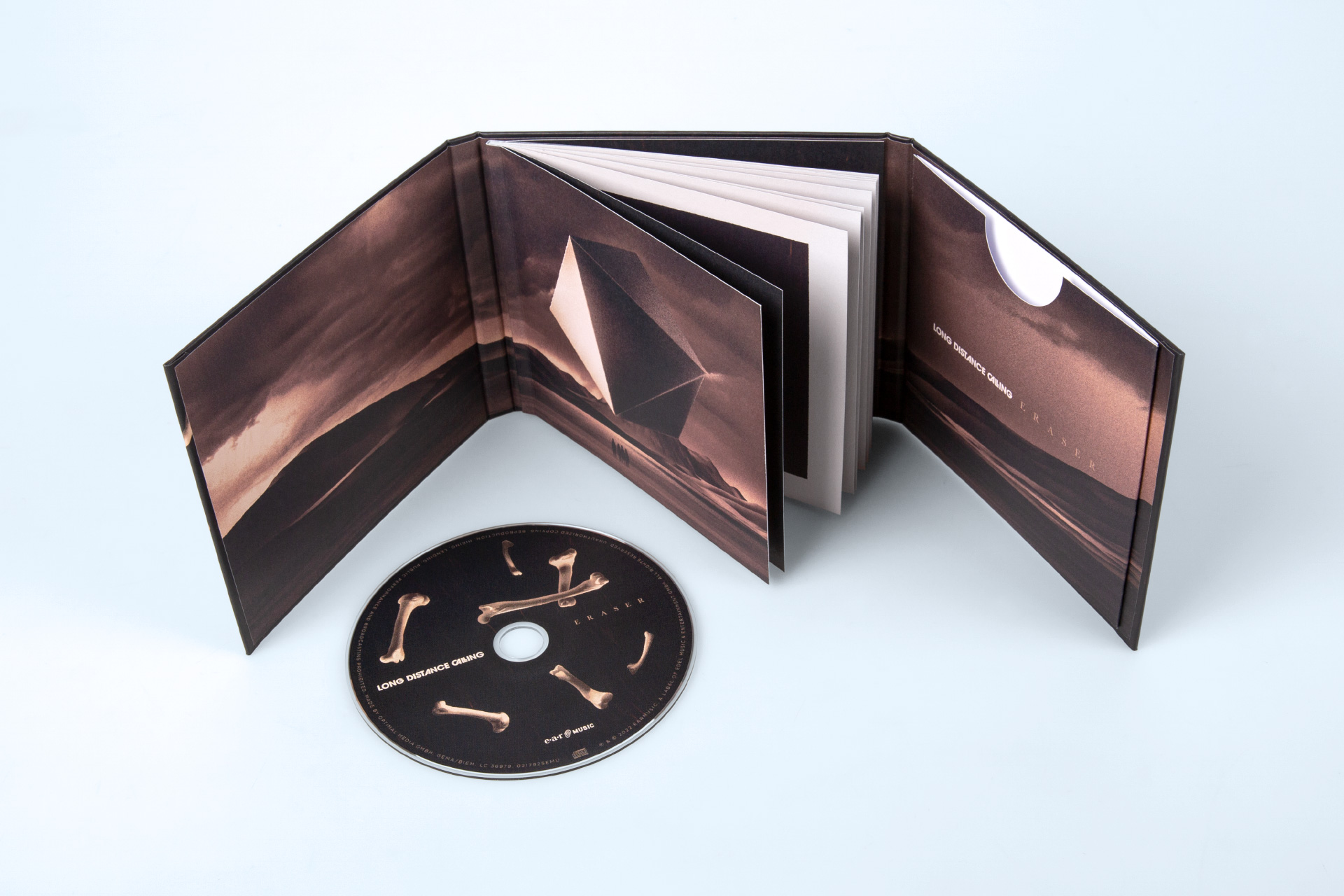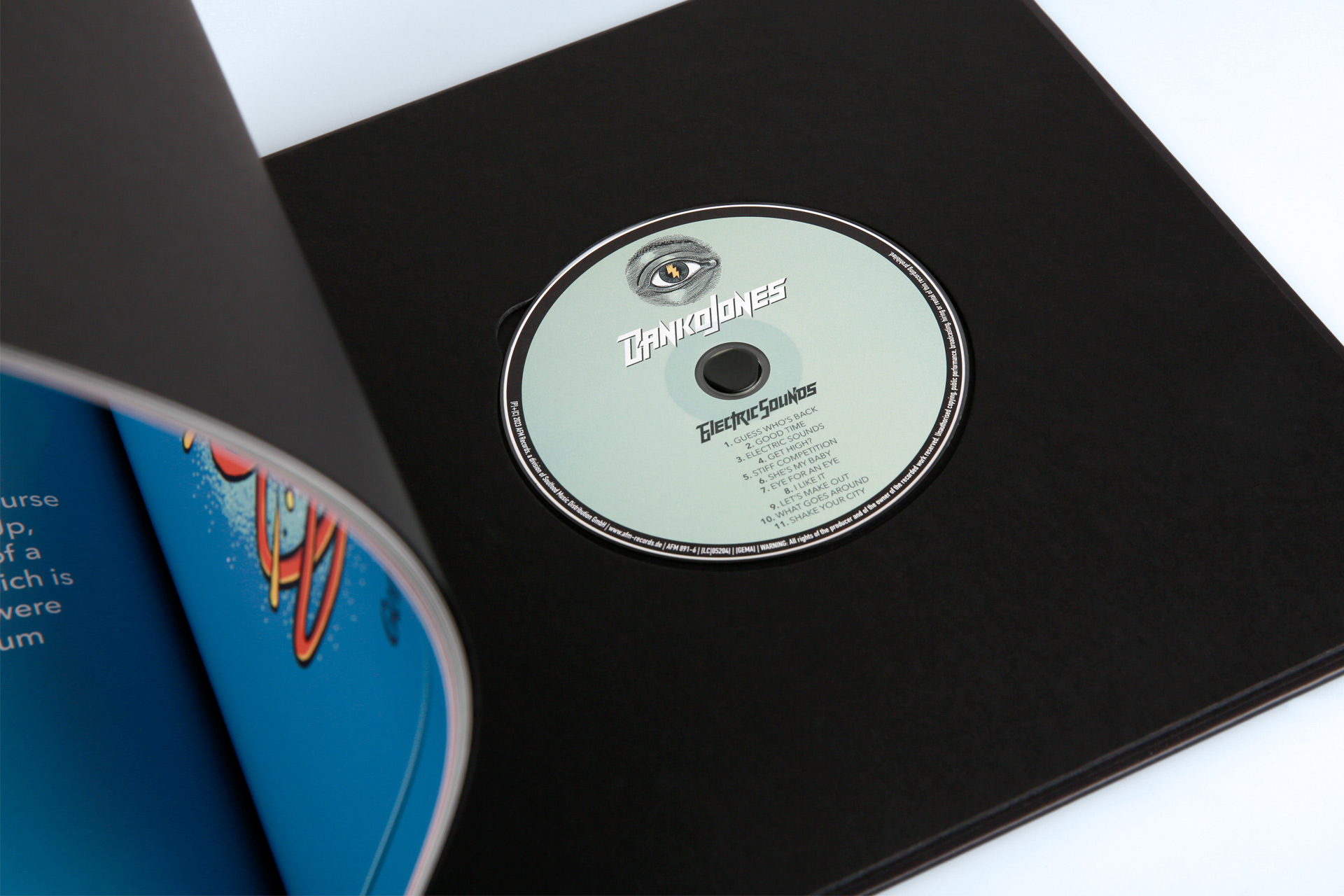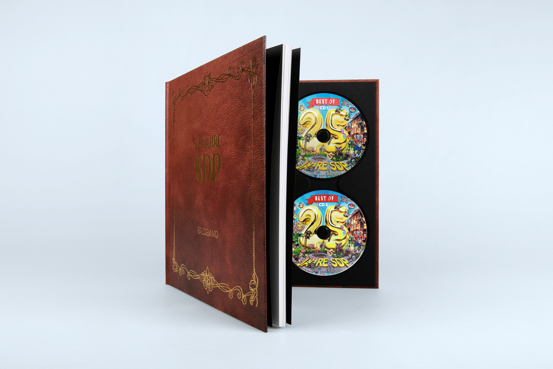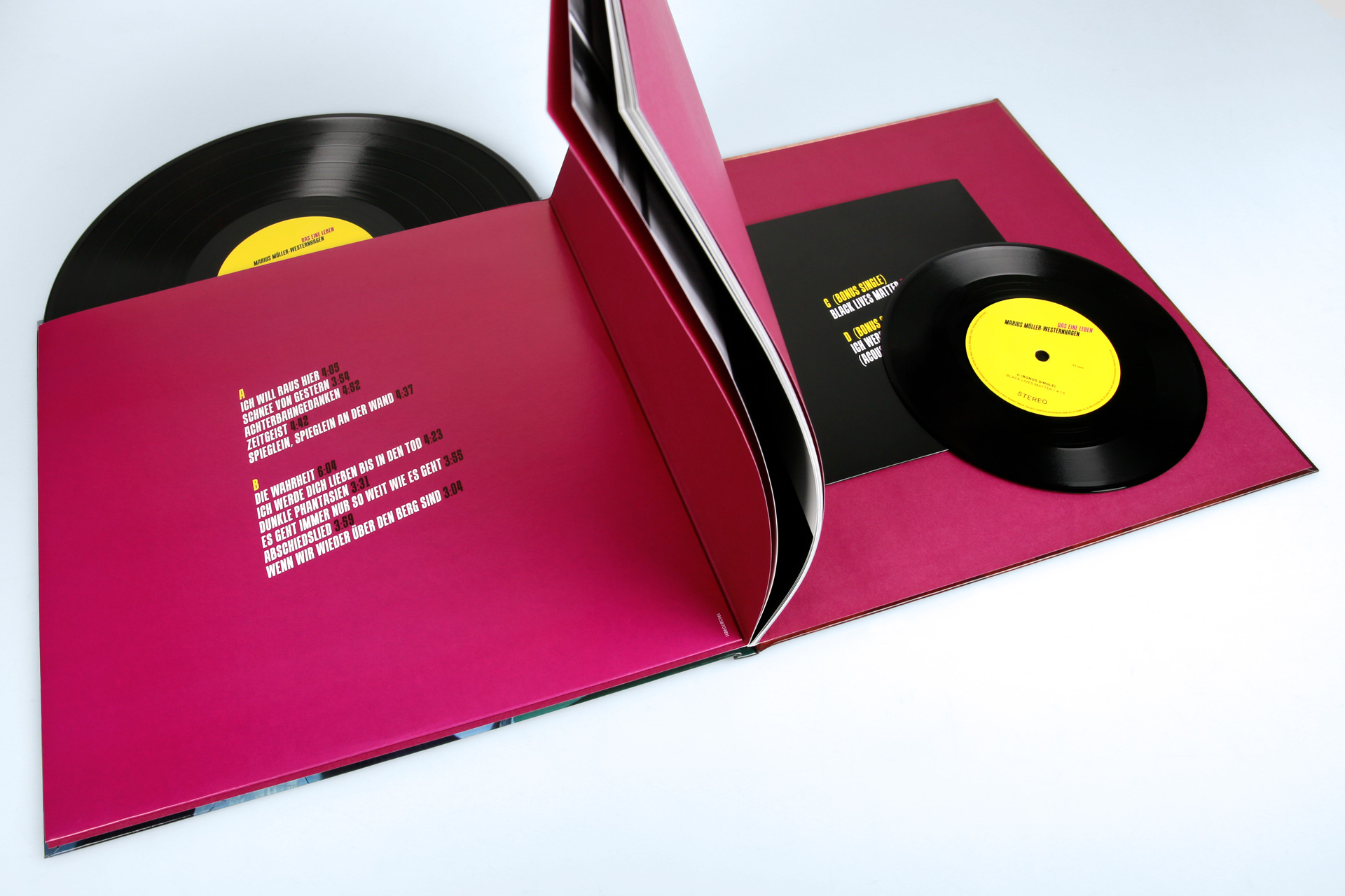 Our media books in vinyl record format offer the option of combining different media. Up to three vinyl records can be integrated as well as optical data carriers.