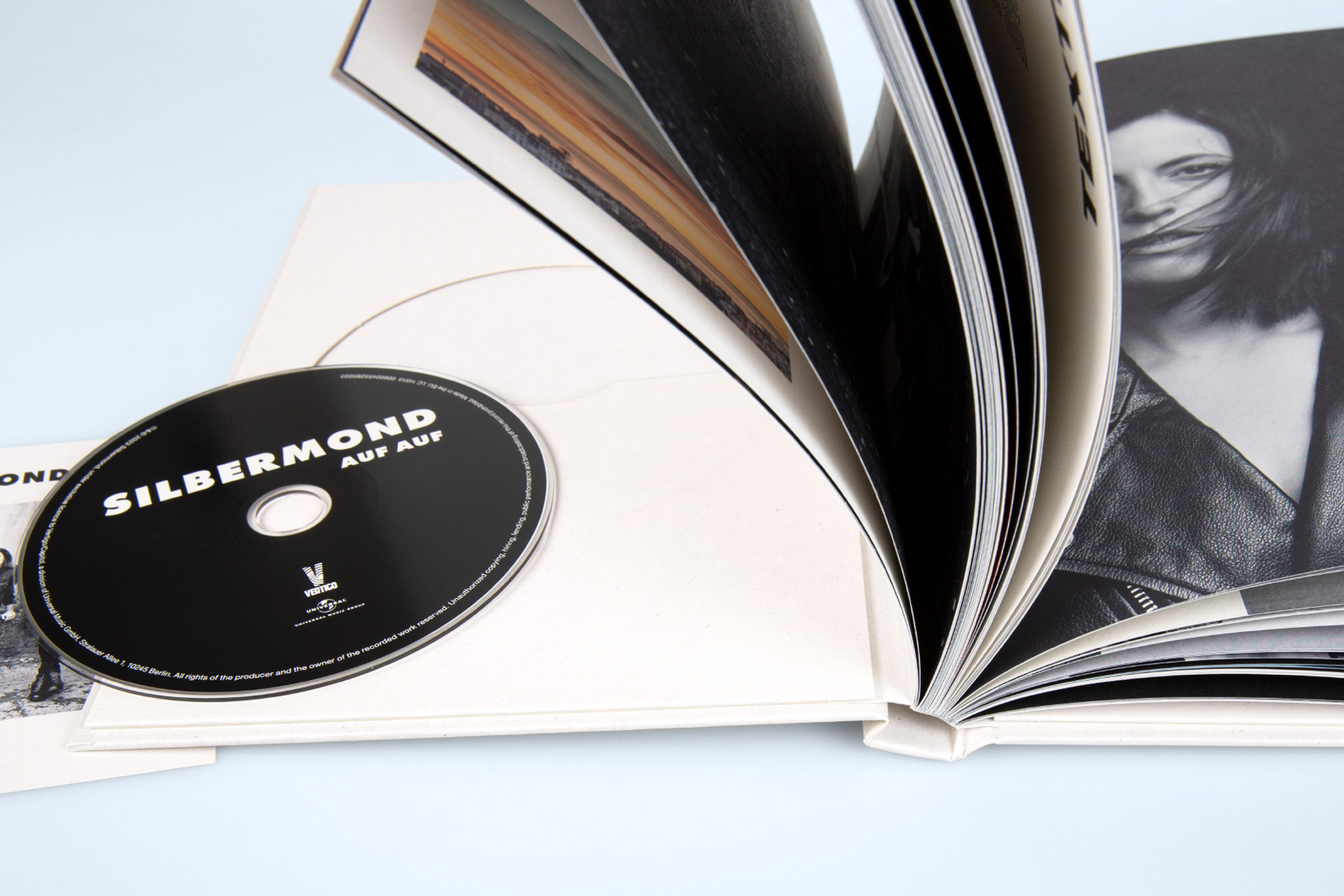The classic earBOOK in 10inch format is particularly suitable for combining book content with optical discs. Glued-in cardboard holders in various designs ensure a secure hold. Vinyl records up to 10inch can also be stored in the earBOOK.