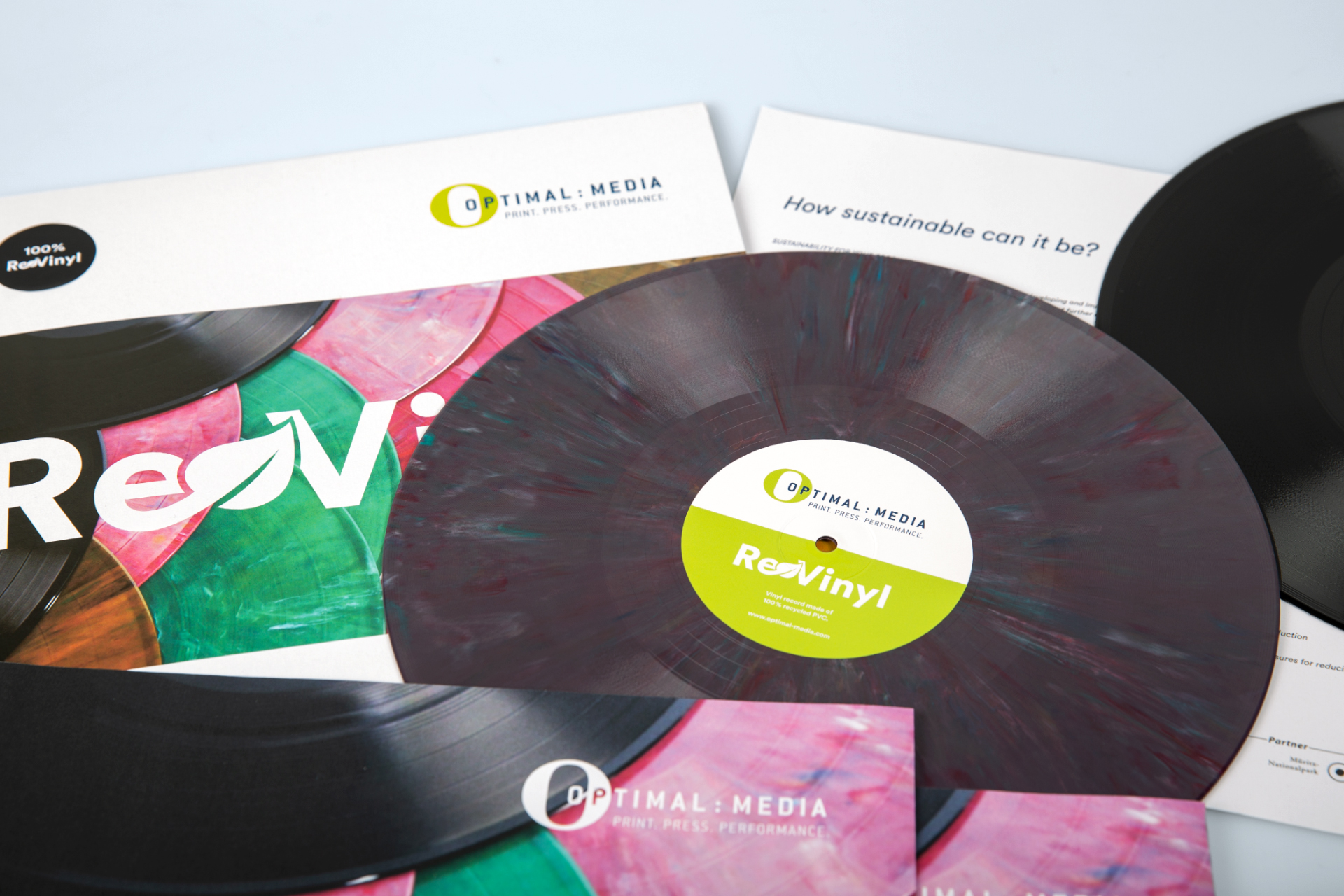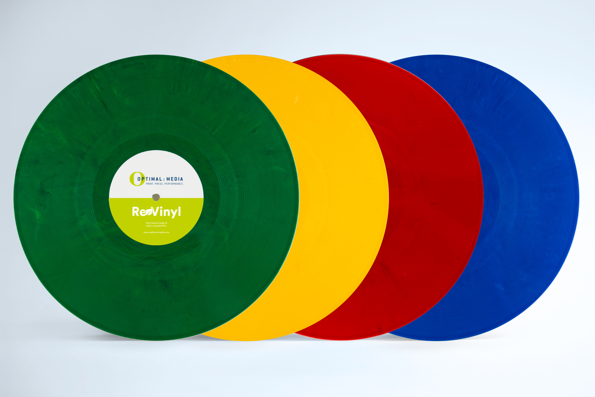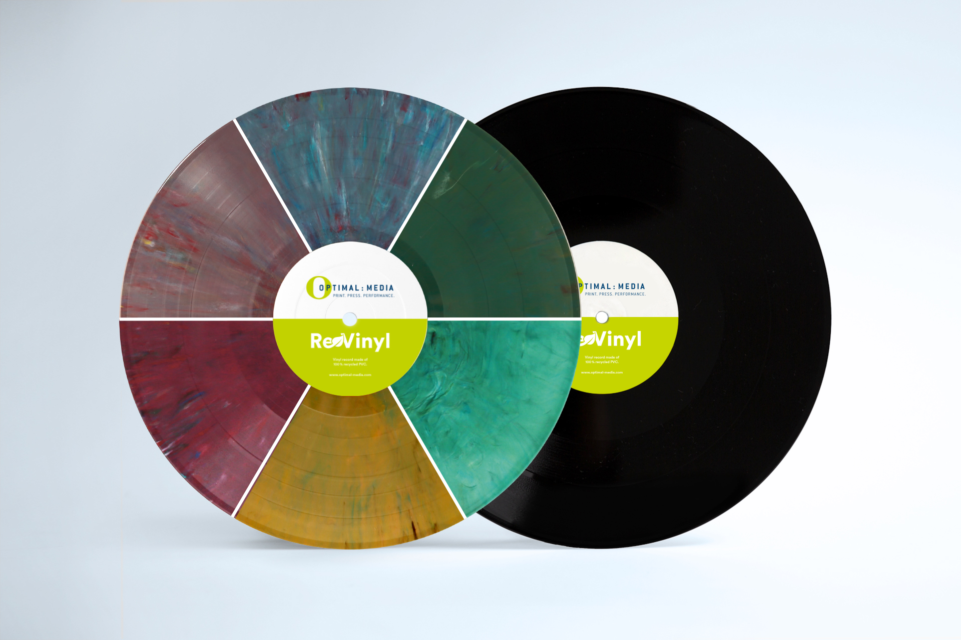 Black or Coloured ReVinyl? The choice is yours! The special feature: Just like Coloured ReVinyl, each of the four colour variants in the ReVinyl Colour Selection is unique and – depending on the composition – has a marbled effect.