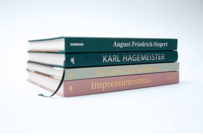 Art in hardcover continues in other book titles as half-linen volumes with slight differences: For example, the book „Karl Hagemeister“ has a silver embossing on the linen with a round spine and the art book volume with the works of „August Friedrich Siegert“ has the hot foil stamping on the paper-covered title. The latter publication also sets new standards with the content material: Here, art is printed on a very high-quality natural paper from Gmund.