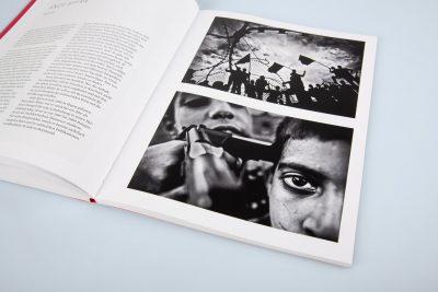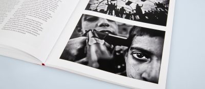Such intense pictorial power deserves a form of presentation in keeping with its style. The anniversary book was produced as a Swiss brochure. On the very high-quality, matt-coated illustration paper, the pictures are shown to their best advantage and impress with their enormous colour saturation. The inside pages of the cover are colour-coordinated with the backstripe of the book block. The magazine cover is adorned with a noble embossing and puts the haptic experience in the foreground. The very clear and reduced design leaves the stage to the photographs. Because they speak volumes.