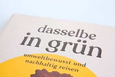 Last year, Elisaveta Schadrin-Esse also published a travel guide, „dasselbe in grün“. The reader learns everything an environmentally friendly traveller needs to know. It is not a scientific work, but a guidebook for „green travel“, without „to-dos and must-see lists“, and is intended to inspire people to pay more attention to the environment when travelling. On the one hand, the content imparts basic knowledge, and on the other hand, there are many tips for planning one’s own travels. The whole thing is entertaining, informative and entertaining and complemented with colourful illustrations.