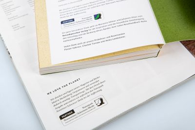 The production of the magazines and the book supports the local nature conservation project „Young Giants for the Next 100 Years“. The publisher also attaches importance to realising production and warehousing regionally.