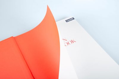 The book design is also aesthetic. It captivates with a great colour contrast between black typography, black ribbon and black matt colour edging to the neon orange glowing background. You can get a little taste of the book with the making-of of the „Fashion Yearbook“, which Callwey Verlag kindly made available to us.