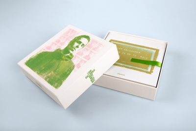 The colour concept corresponds to every detail, and makes this edition a real eye-catcher. As soon as the lift off lid box is opened, a green satin ribbon matching the artwork of the box cover is visible. This helps to lift up the 14 single sleeves, each of them with a photo of the artist on its cover. It gives the impression of opening a photo album – in silk-screen print look and in different, harmoniously coordinated colour worlds.