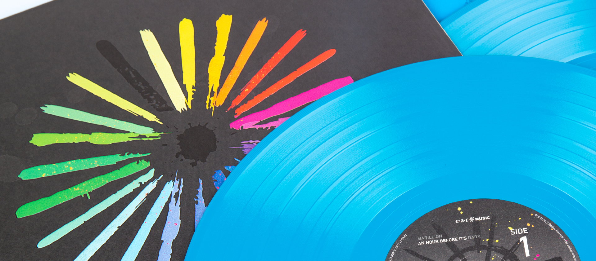 Natürlich ist das Album auch im analogen Format erschienen, je als Doppel-Vinyl in Schwarz, Blau und Orange. Die Schallplatten sind jeweils in bedruckte Innentaschen und ein Gatefold verpackt.