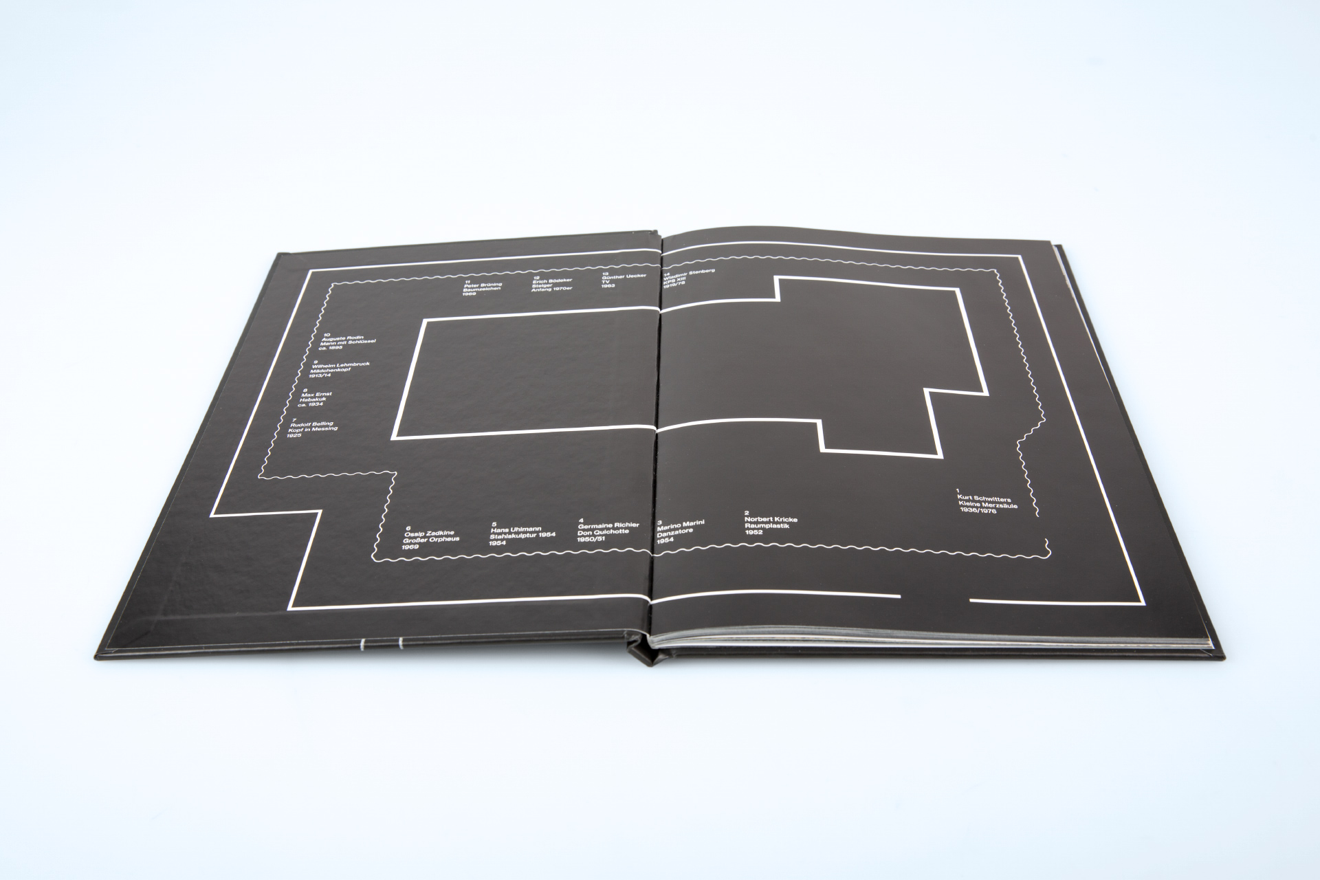 Das Hardcover mit einem Format zwischen DIN A5 und DIN A4 ist vom Wienand Verlag herausgegeben und umfasst insgesamt 64 Seiten. Davon sind 32 Seiten auf Transparentpapier 1-farbig Schwarz gedruckt und simulieren das Licht- und Schattenspiel im erleuchteten Glaskasten. Die mit kratzfester Mattfolie bezogene Buchdecke ist zusätzlich mit einem partiellen UV-Glanzlack veredelt und lässt die Typo erst im Gegenlicht erstrahlen.