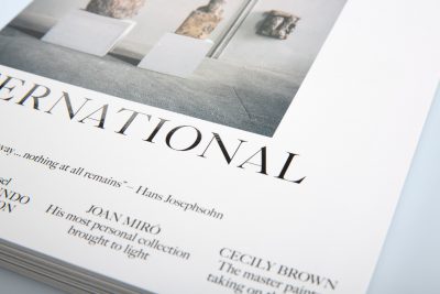 BLAU International ist das jüngste Kunstmagazin des Axel Springer Verlages mit langen, monografischen Künstlerporträts. Umfangreiche Interviews und Geschichten sowie spannende Bildstrecken liefern interessante Einblicke in die internationale Kunstwelt von heute und gestern. Atelierbesuche bei den einflussreichsten Künstlern unserer Zeit, exklusive Beiträge von renommierten Autoren, Portraits von Starfotografen und stylischen Modestrecken machen das Magazin zu einem wahren Sammlerstück.