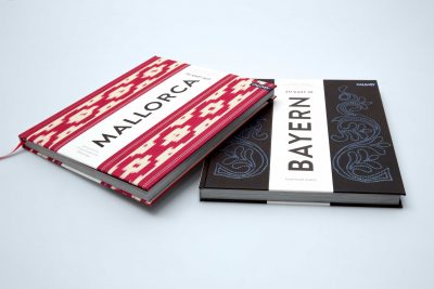 Die besonderen Kochbücher vom Callwey Verlag, die nicht nur tolle Rezepte und Restaurants, sondern auch Porträts und Interviews von und mit Gastronomen vorstellen, haben eines gemeinsam: eine zum Thema des Buches passende Buchdecke und ein interessant gestaltetes sowie verkürztes Vorsatzblatt. So hat die Buchdecke von „Zu Gast auf Mallorca“ eine 2 mm starke Wattierung und ist mit einem im Offset bedruckten Iris-Gewebe bezogen. Das Vorsatzpapier ist formgestanzt.