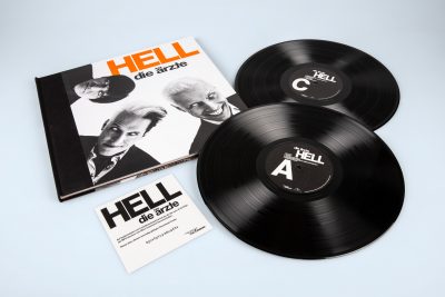 Im Inneren finden sich zwei schwarze 12inch Schallplatten (180g heavyweight Virgin Vinyl) und ein Beileger mit Downloadcode. Auf den in Fadenheftung gebundenen acht Vor- und Nachsatzseiten sowie den 64 Inhaltsseiten findet sich neben “Sweet Gwendolin“, exklusiven Bandfotos und Liedtexten von „HELL“ auch das bekannte Signet der Band.