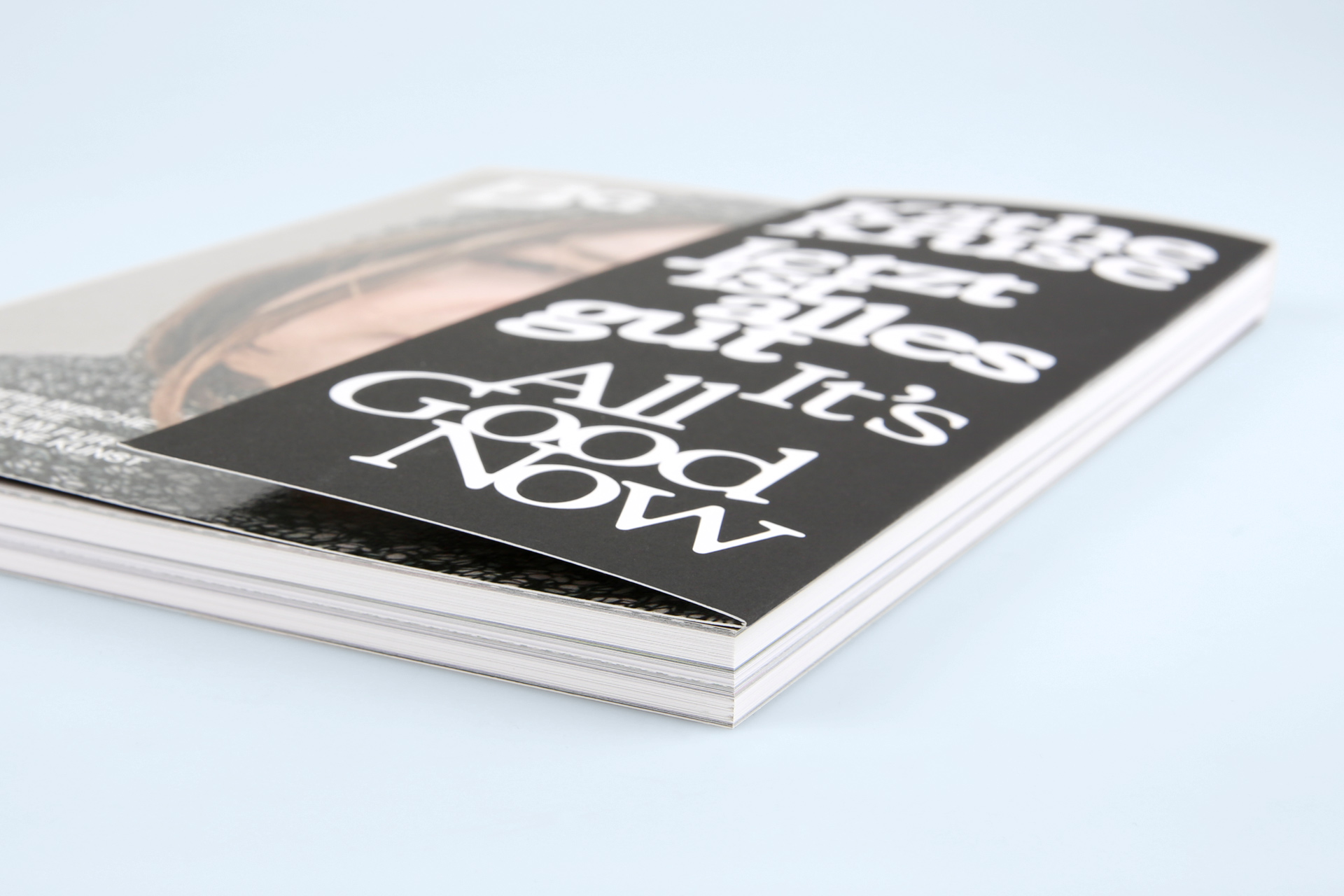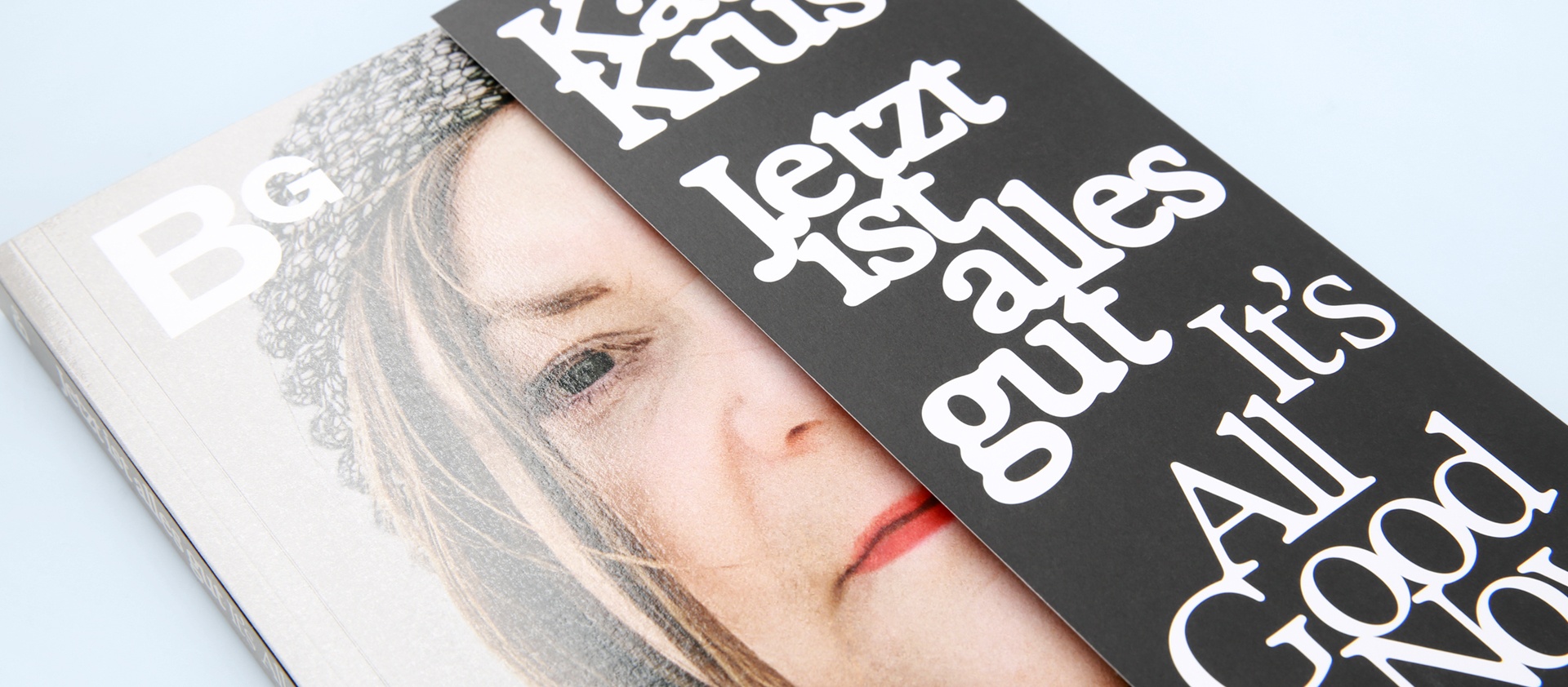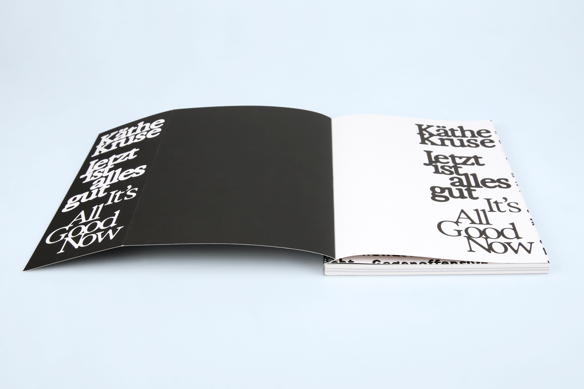Zum inhaltlichen Thema Wandel und Transformation passend erscheint dieser Kunstkatalog mit einigen Besonderheiten in der Fertigung. Der 5-fach gerillte Umschlag der Broschur ist mit einer nach außen gefalzten Klappe gefertigt. Diese legt nicht nur in ihrer Funktion Verborgenes frei, sondern zeigt auch in ihrer Beschaffenheit Gegensätze auf. So ist der Umschlag außen einseitig mit einer kratzfesten Glanzfolie kaschiert – bei der Umschlagklappe ist die glänzende Veredelung durch das Umklappen jedoch innen, was auf dem Umschlag den Gegensatz von glänzend veredeltem und offenem Papier hervorbringt.