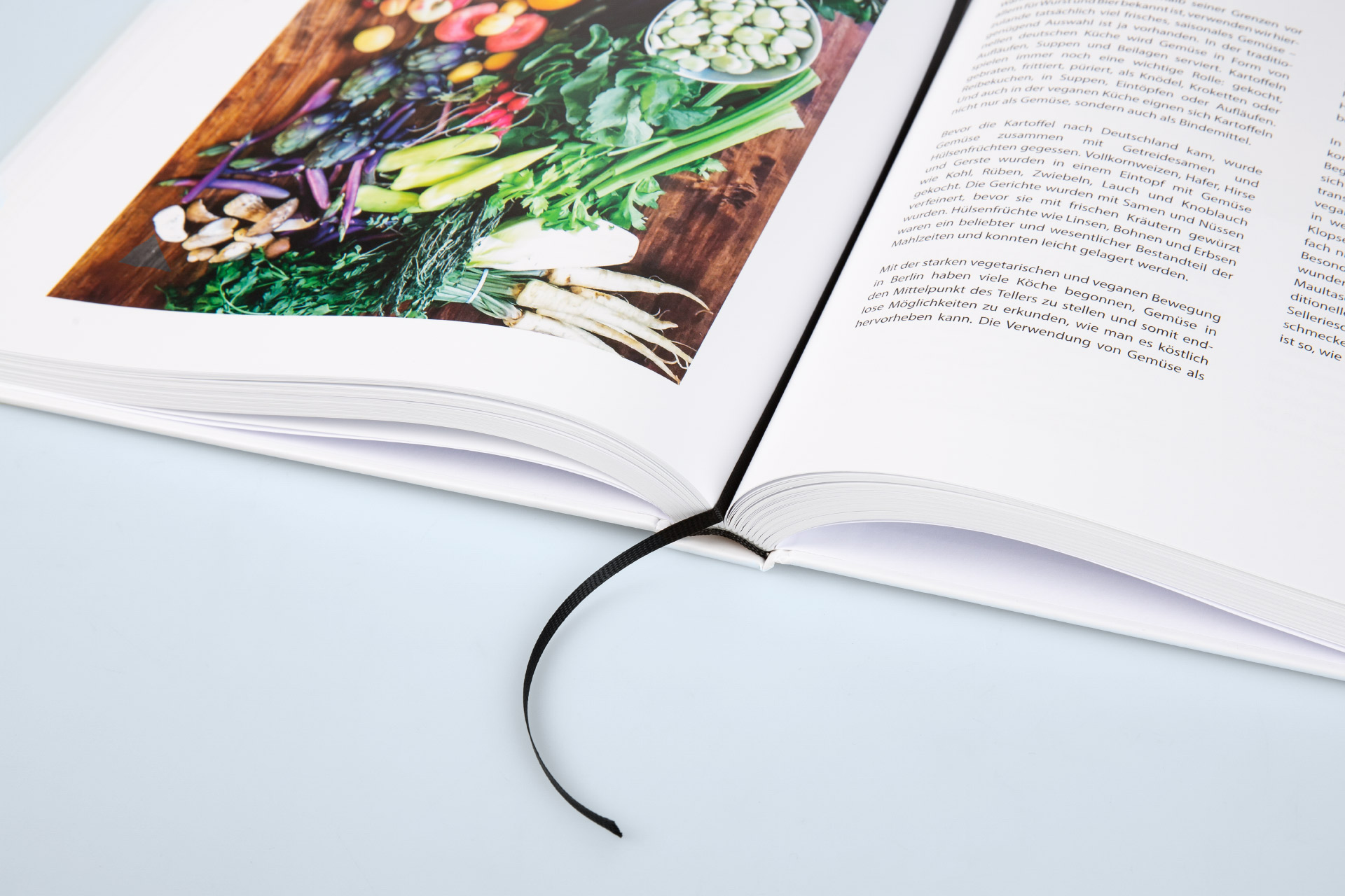 Das Kochbuch „Schöne Heimat“ vom Callwey Verlag ist als Hardcover mit Kastenrücken und Leseband gefertigt. Die Blindprägung auf der weißen und mit katzfester Mattfolien bezogenen Buchdecke zeigt eindrucksvoll, wie eine interessant eingesetzte Veredelung den Blick des Betrachters auf sich zieht.